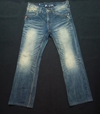 -CONDITION- *Worn (8/10). *One zip handle Pocket missing (MARK WITH PEN). (Please see the pictures for more details) -MEASUREMENT- *TAG SIZE: Fits 31-32 -MANUAL MEASUREMENT- *WAIST: 32 INCHES *RISE: 10.5 INCHES *INSEAM: 31 INCHES *OUTSEAM: 41 INCHES -MATERIAL- *100%COTTON -MADE IN- *KOREA -CODE SHIRT- (FOR SELLER REFERENCE) *A1071 -NOTE- *Please see the pictures for more details. *Please provide TELEPHONE NUMBER after purchased, I need to fill the postage form for delivery process. Thank you.