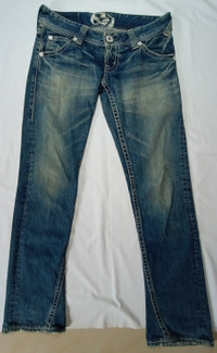 Distressed Denim - Rodeo crowns blue denim jeans distressed bikers wear