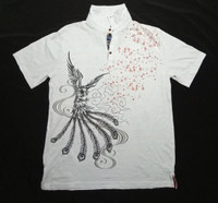 Japanese Brand - Peacocks Art Printed Polo Tee Sukajan