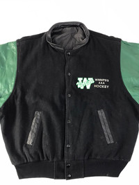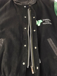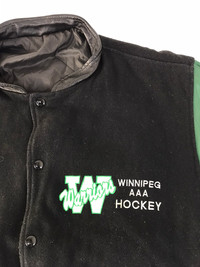 Leather Jacket - Bomber Shanter Warrior Winnipeg AAA Hockey Embroidery Logo