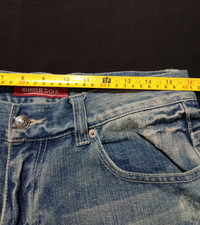 -CONDITION- *Worn (8/10). *Jeans slightly yellowish. (Please see the pictures for more details) -MEASUREMENT- *TAG SIZE: 32 -MANUAL MEASUREMENT- *WAIST: 16 INCHES *RISE: 11 INCHES *LENGTH: 43 INCHES -MATERIAL- *100%COTTON -MADE IN- -CODE SHIRT- (FOR SELLER REFERENCE) *A1069 -NOTE- *Please see the pictures for more details. *Please provide TELEPHONE NUMBER after purchased, I need to fill the postage form for delivery process. Thank you.