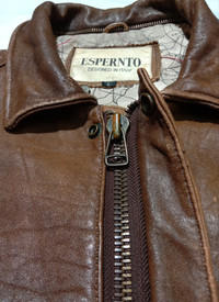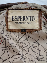 Vintage - ESPERNTO Italy Leather Jacket France World Map Inside