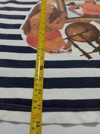 CONDITION: Worn (8/10). Detached stitch under both armpit. Please see the pictures for more details. MEASUREMENT: TAG SIZE: Fits L/XL (PLEASE SEE MEASUREMENTS) ARMPIT TO ARMPIT: 25 INCHES LENGTH: 28 INCHES MATERIAL : 100% Cotton CODE SHIRT : A650 MADE IN : NOTE : Please see the pictures for more details. *Please provide TELEPHONE NUMBER after purchased, I need to fill the postage form for delivery process. Thank you.