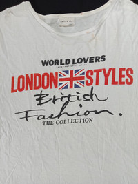 -CONDITION- *Worn (6/10). Major yellowish at shirt. (Please see the pictures for more details) -MEASUREMENT- *TAG SIZE: L -MANUAL MEASUREMENT- *ARMPIT TO ARMPIT: 20 INCHES *LENGTH: 25 INCHES *SHOULDER TO ARM: INCHES -MATERIAL- *Cotton -MADE IN- * -SKU- *A1292 -NOTE- *Please see the pictures for more details. *Please provide TELEPHONE NUMBER after purchased, I need to fill the postage form for delivery process. Thank you.