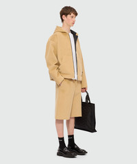 Beige Bermuda shorts in scubbated velvet