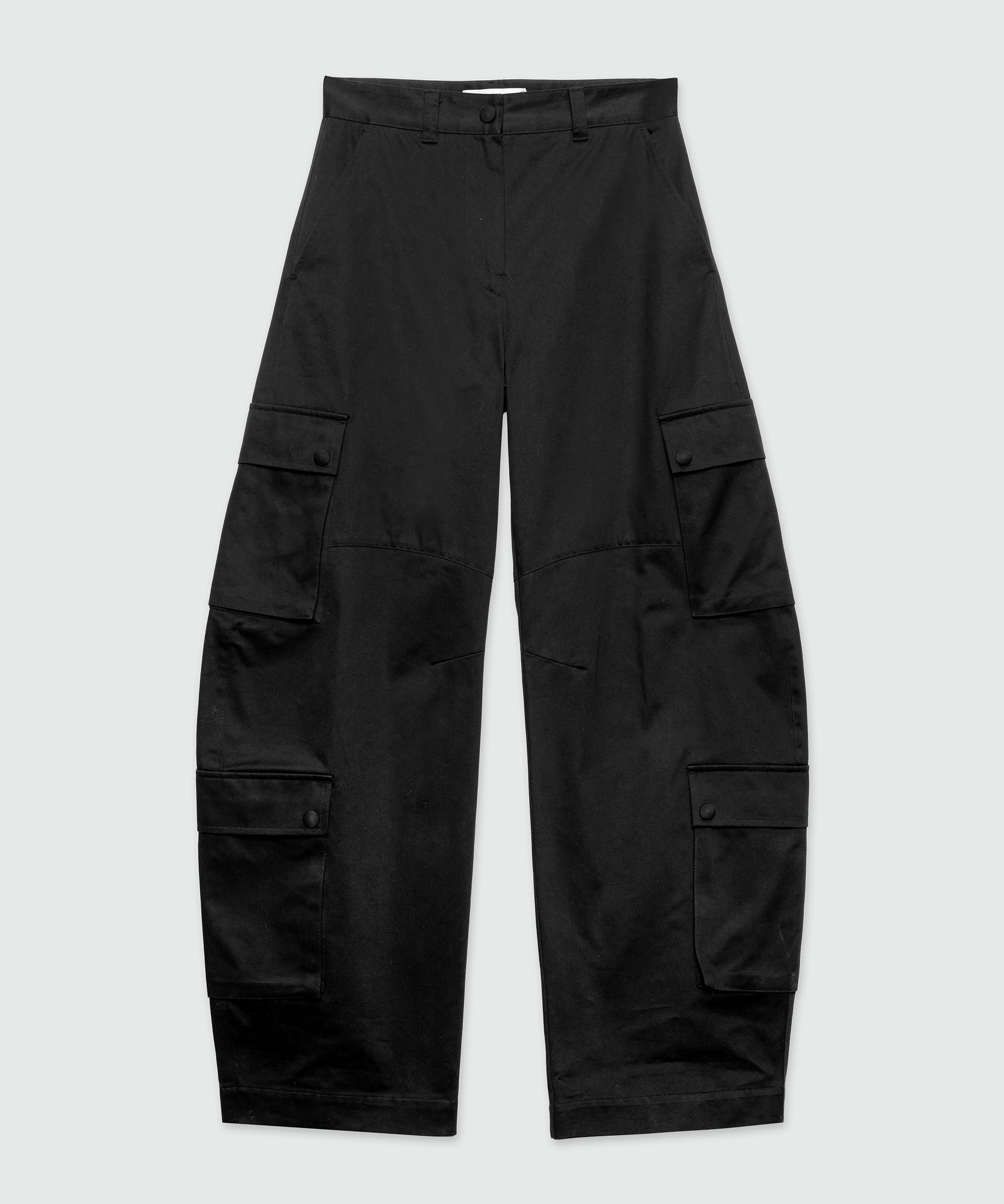Cotton drill cargo pants with four full-length patch pockets with flaps and snap buttons. Front zip and button closure, waistband with belt loops. Side slant pockets and back welt pockets. Oversized fit. Model wears size S/40. CODE: 3941MDP07X-257629-99 Details and fit - 100% CO