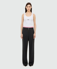Palazzo trousers crafted from cool wool with a matching two-tone belt. Side pockets and pressed pleats down the leg. Regular fit. The model is wearing a size S/40. CODE: 3941MDP04Y-257605-99 Details and fit - 96% WV / 4% EA