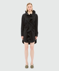 Cotton poplin shirt minidress embellished with a wide gathered ruffle along the front button placket. Structured collar with wavy edge, long sleeves with buttoned cuffs. Front closure with hidden buttons. Rounded hem, longer at the back. Regular fit. Model wears size S/40. CODE: 3941MDA38X-257602-99 Details and fit - 100% CO