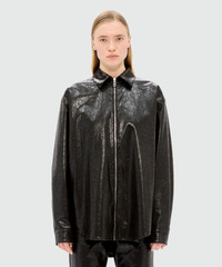 Black shirt in faux leather with a crackle effect