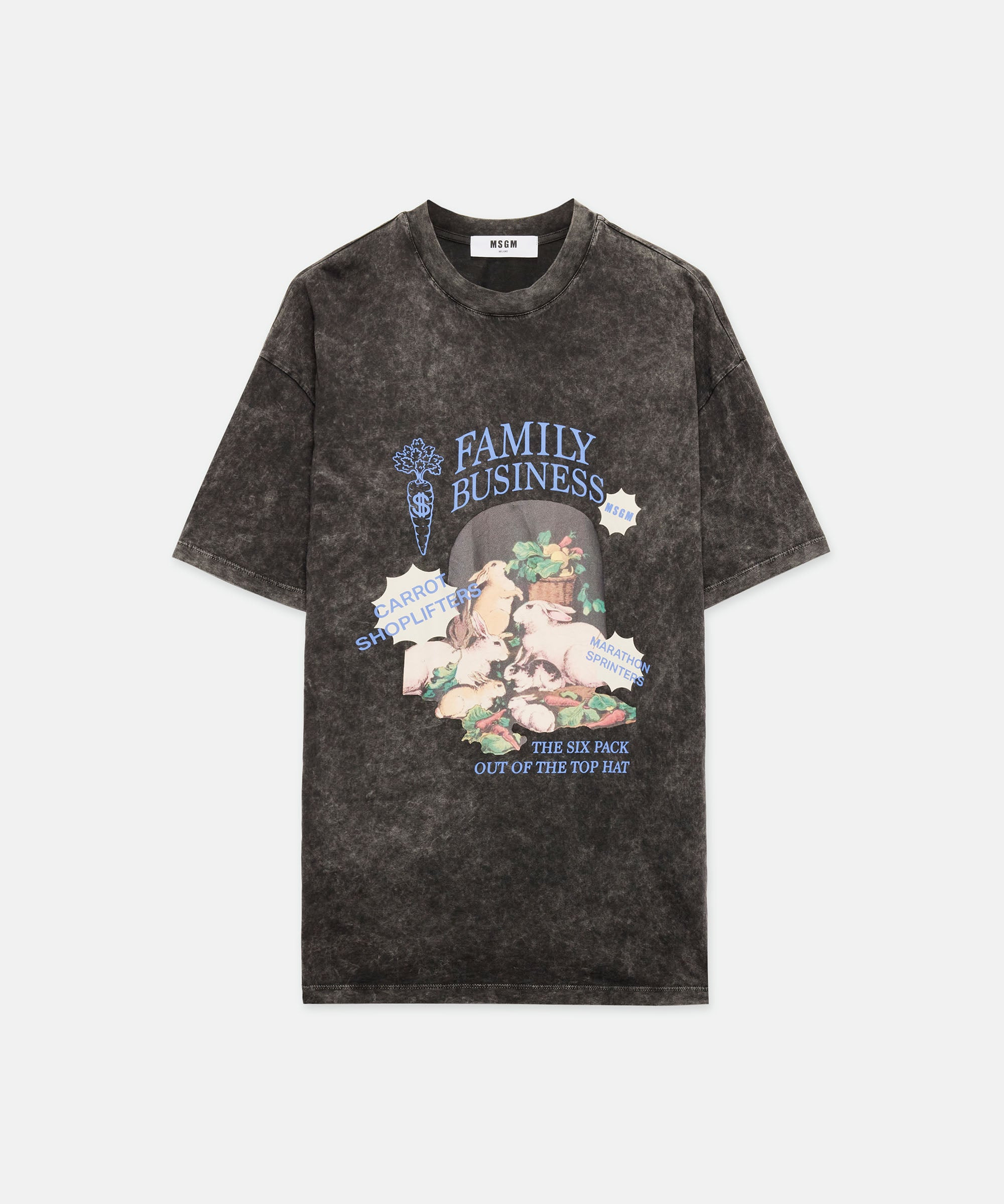 Cotton jersey T-shirt with a marbled wash. Multicolored "Family Business" graphic on the front. Crew neck and straight hem. Oversized fit. The model is wearing size M/48. CODE: 3940MM107SE-257589-99 Details and fit - 100% CO