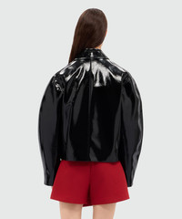 Vinyl jacket with a classic collar, long sleeves, a covered zip front closure and an exposed button at the neck. Side welt pockets. Oversized fit. The model is wearing a size S/40. CODE: 3941MDH06X-257614-99 Details and fit - 100% PL