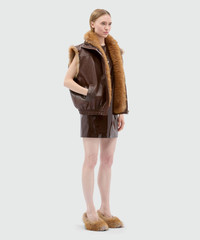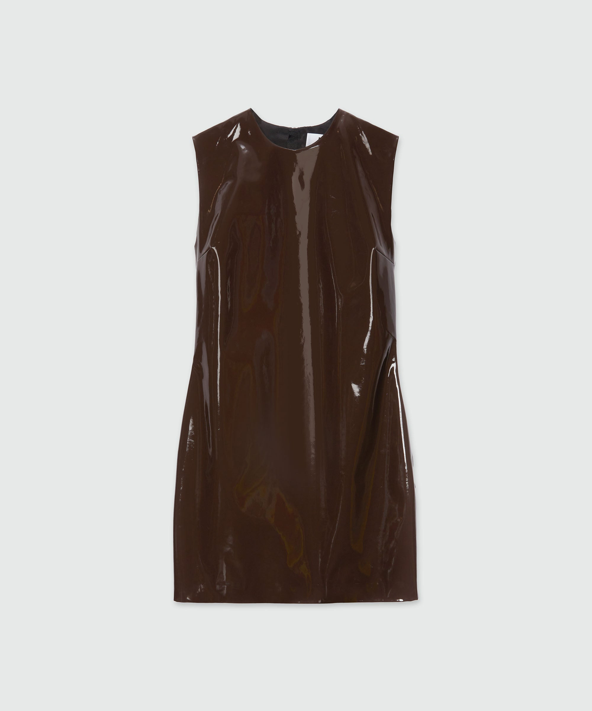 Sleeveless vinyl minidress. Invisible back zip closure and round neckline. Regular fit. Model wears size S/40. CODE: 3942MDA24-257802-30 Details and fit - 56% PU / 44% PL