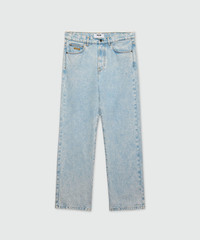 Light denim trousers with a marbled effect, featuring five pockets, metal rivets, and an MSGM patch on the back. Contrast stitching and an embroidered logo detail on the front pocket. Oversized fit. The model is wearing a size M/48. CODE: 3940MP236L-257592-84 Details and fit - 100% CO