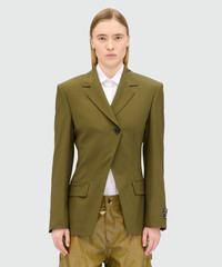 Olive green single-breasted jacket in cool asymmetric wool