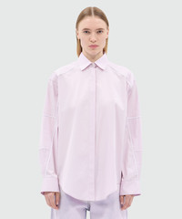 Pink poplin shirt with contrasting piping
