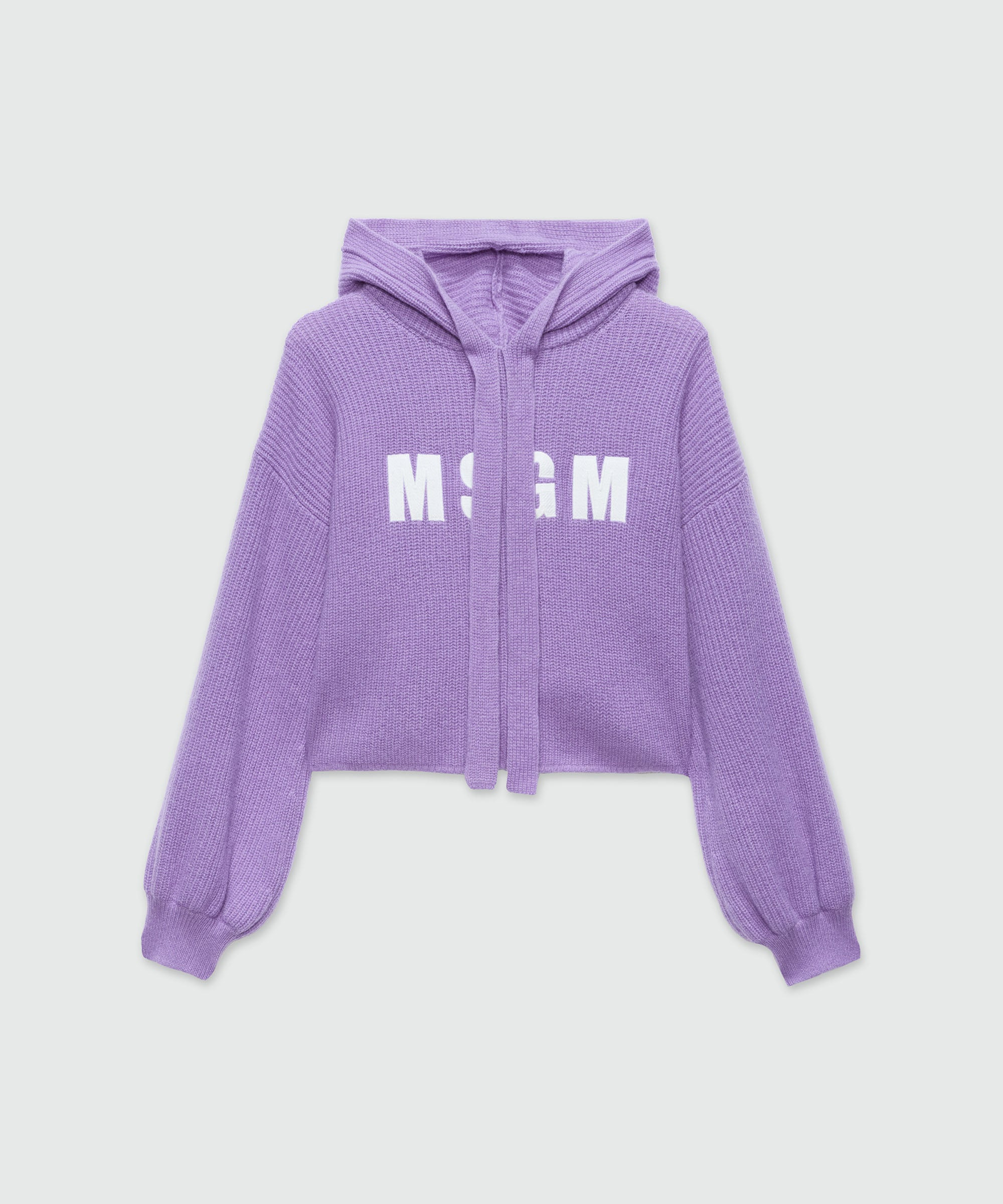 Purple cashmere blend hooded sweater with MSGM logo