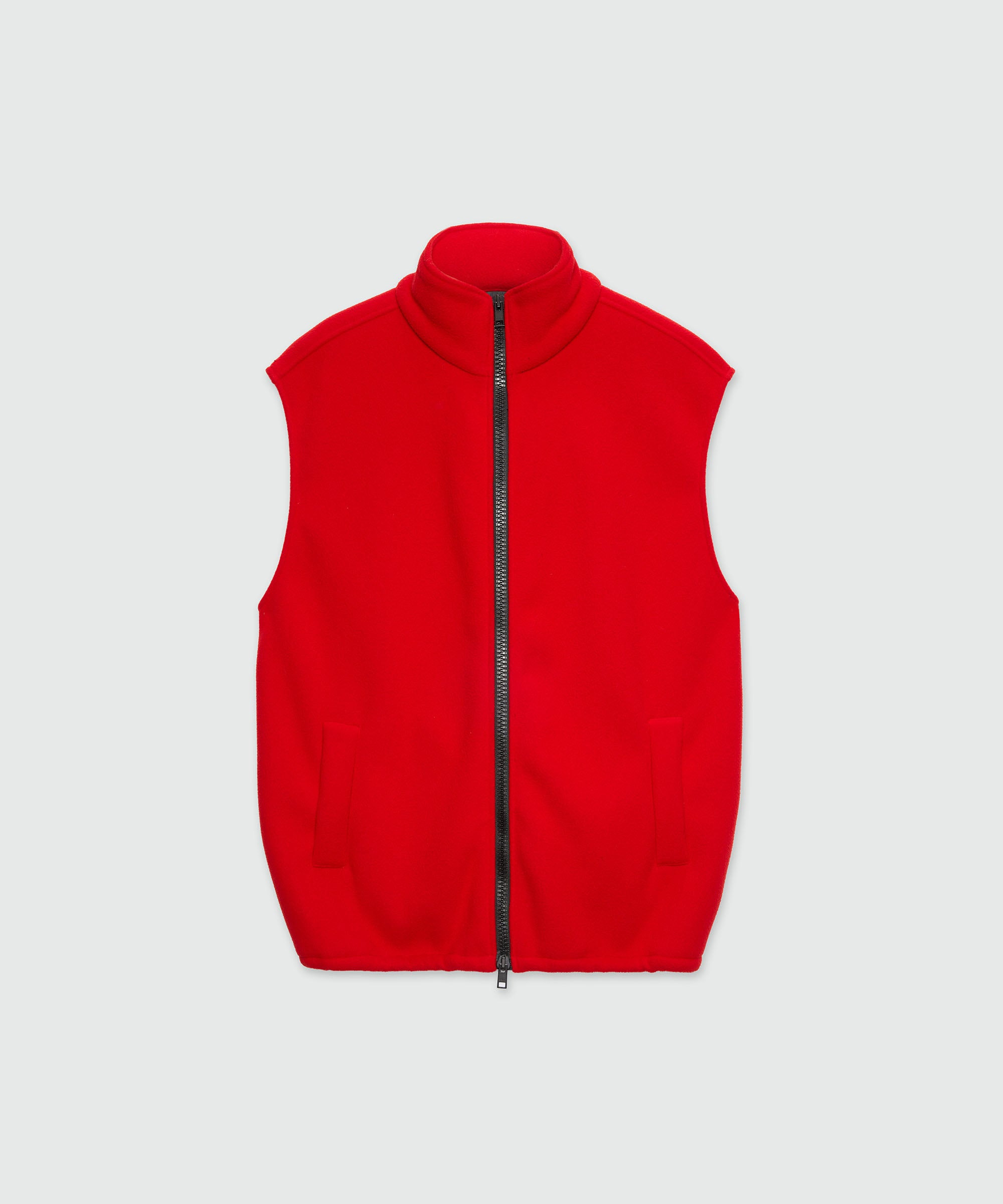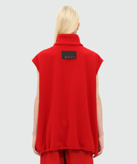 Red fleece vest with high collar