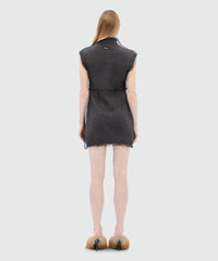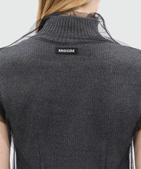 Short sleeveless anthracite knitted dress with tulle overlay
