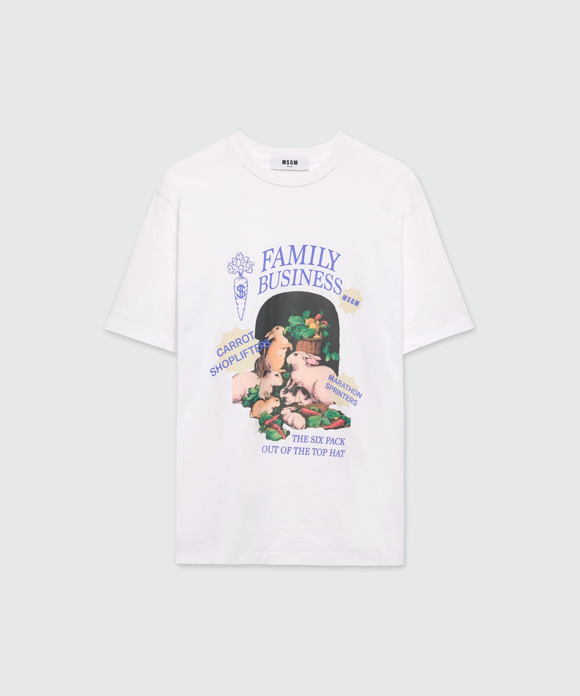 Cotton jersey T-shirt with "Family Business" graphic printed on the front. Ribbed crewneck, cuffs and hem finished with double stitching. Dropped shoulders for comfort and a relaxed style. Oversized fit. Model wears size S/40. CODE: 3941MDM112SE-257590-01 Details and fit - 100% CO