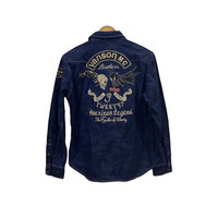 It a denim jacket but can wear as bottom up shirt -motorcycle brands -Embroider logo -big logo Vanson X tweety’s cartoon Condition like new -Will fix s size with comfortable Measurement Chest -20 inch Length -27 inch Shoulder -17 inch Sleeve length -25 inch -please read sizing clearly and converte to cm before make any purchase- AD-1
