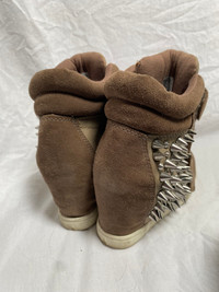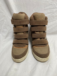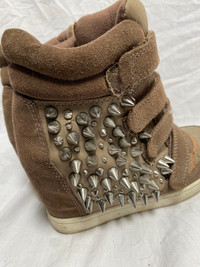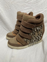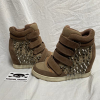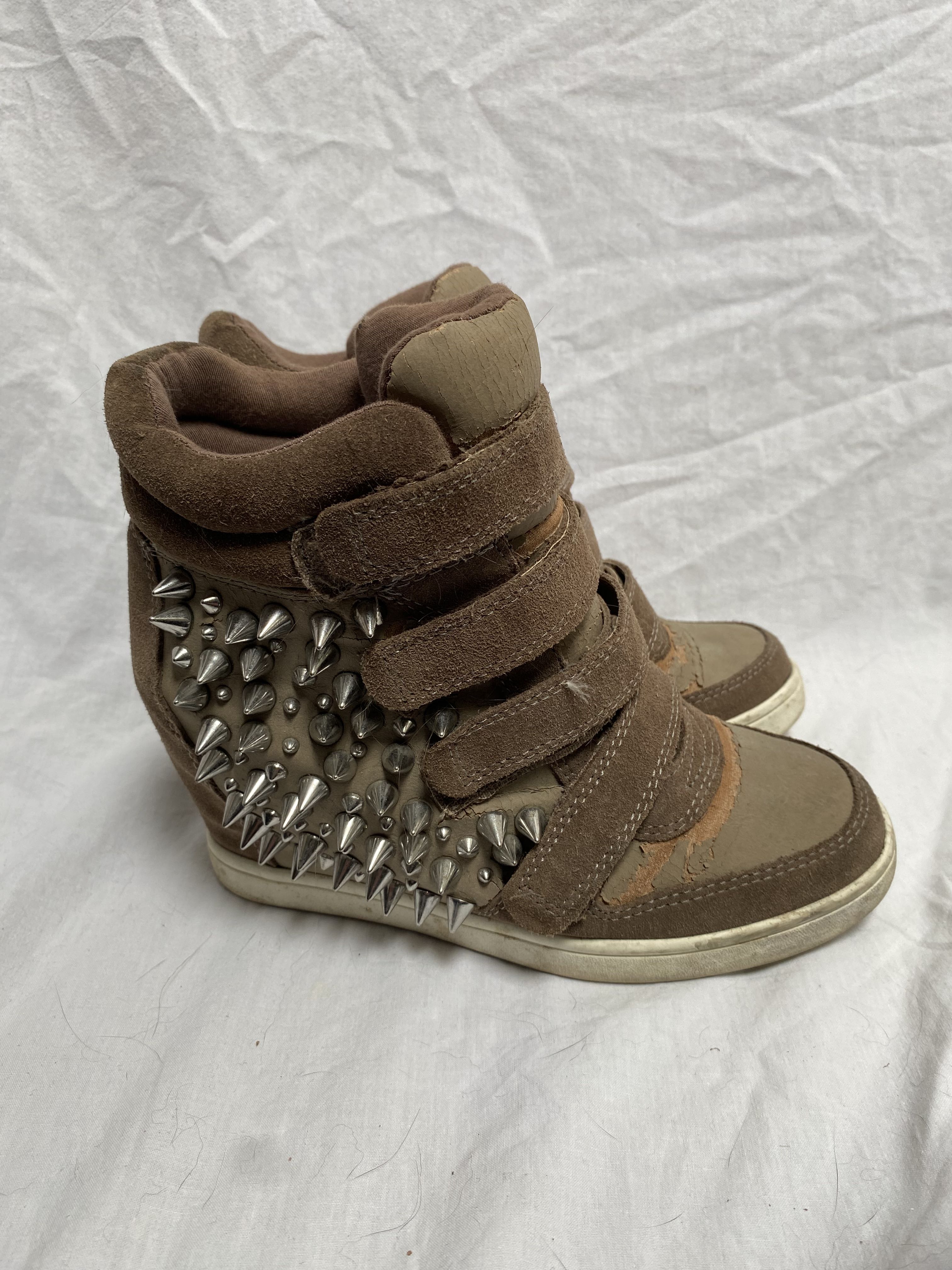 Rare vintage studded wedge heel sneaker with velcro fastening Color beige, brown size 38. Material is crumbling in some places. Futuristic avant garde punk maxi parachute cargo skirt layers adjustable strings hem knee area belt loops buckle closure blended fabric vintage retro rare original collector print typographie nineties y2k egirl aesthetic graphique allover imprimé motif pattern 1990s 2000s 0000s lowwaist boyfriend large wide festival collection designer créateur alt alternative alternatif thrift thrifted statement trendy tumblr mrock 90s 00s cargo psychédélique nacré knitted sweater surpiqûres dentelle foulard corset droit évasé flare street mao mesh frange brillant coutures apparentes pailletés fancy Space maglione fantasia utilitarian tactical subversive basic apocalypse neutral earthy tone archive messenger cyberpunk surjupe romantique casual streetwear Plissé déconstruit detruit apocalyptique look cleancore fantaisistes fantastique gothiques minimalistes grunge sombres asymétriques drapés expérimentaux monochromes innovants épurés contemporains oversize structurés industriels élégants non conventionnels éthérés artistiques audacieux progressistes radicaux singuliers sex-shop fluides géométriques intemporels provocateurs novateurs dunes deconstructed technique Coquette subversive Victorian fairy doll fashion cottage core punk batz rococo miss Lolita emo dreamcore forest nymph rave dog cyber goth sixty Bohême gyaru techwear trance nana plein sud furr leather belt studded lace-up rickowens Margiela déconstruit bustier tricot unique stipes Crystal castles LGB ifsixwasnine chromehearts 14thaddiction kmrii catorce sharespirit japanese highend Yproject yohjiyamamoto bottega gl lady gaga Sculptural urbaine romantique takuya angel