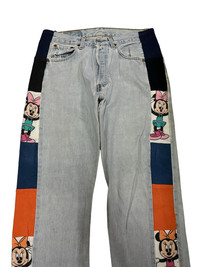 CUSTOM MADE LEVIS 501 PATCHED MINNIE MOUSE DENIM PANT