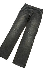 Japanese Brand - RARE🔥DOUBLE TONE RIPPED STUDDED DENIM+COTTON PANTS