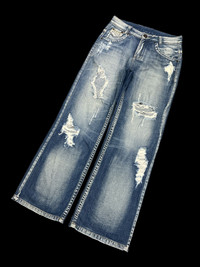 Japanese Brand - SUPER SICK‼️BAGGY💥UNKNOWN THRASHED RIPPED DENIM PANT