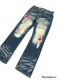 SICK🔥Thrashed Patchwork Denim Pants Japanese Brand MCD