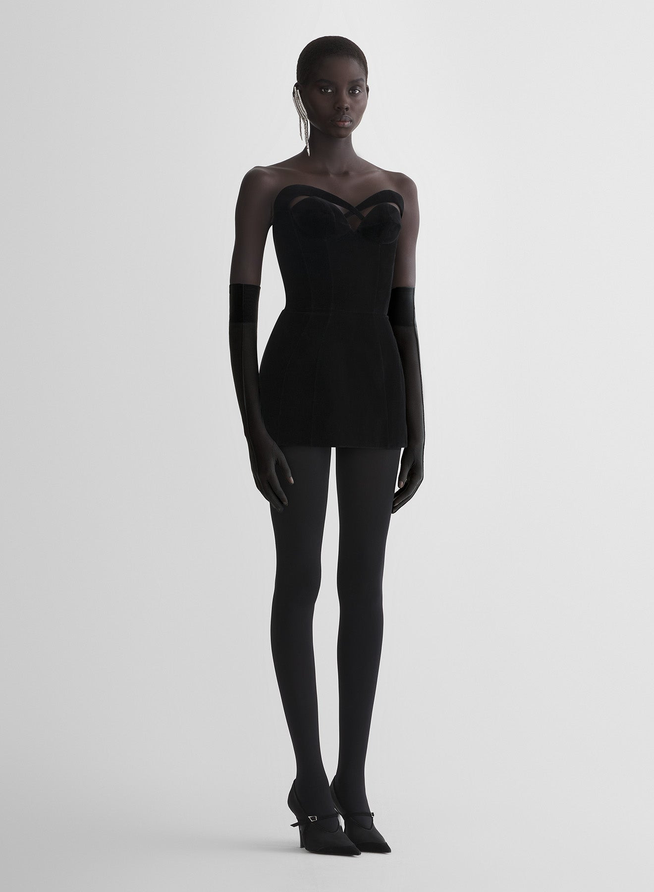 - From the Lingerie pret-a-porter collection fall/winter 1998-1999 - Fitted mini dress in black Japanese tailoring velvet - Twisted and structured bustier bust-line with cut-outs - Tone-on-tone zipper in the back - Fully lined DETAILS LINING:100% CUPRO MAIN FABRIC:78% SILK 22% POLYESTER SECOND FABRIC:54% RAYON 46% COTTON made in BULGARIA style: COM1RO17962020