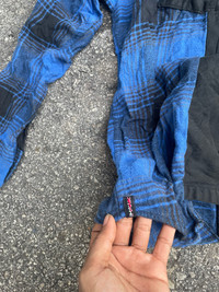 Not conventional brand oversize style Chest- 25 inch Length- 28 inch Like size M to L Condition good just button one missing n broken