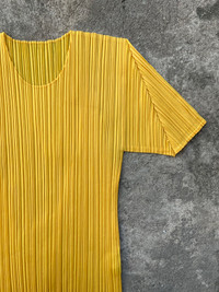 PLEASE read all descriptions before buying Pleats Please Issey Miyake Monthly Colors April Shirt in Light Yellow. Finely pleated top in a light yellow colorway. Featuring quarter sleeves and a high neckline. Size -M/L Condition-like good Material-100% Poly Knit No flaw,overall good condition #japanesefashion #japanesebrand
