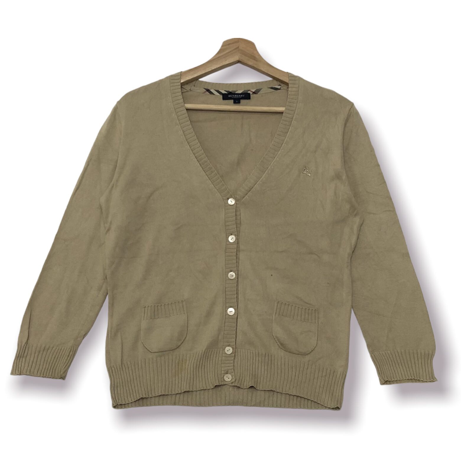 Cardigan Small Logo Burberry London Size M -PLEASE REFER TO THE PICTURE FIRST BEFORE MAKING A PURCHASE •BELIEVE ME YOU WILL BE HAPPY AFTER BUYING !! *Measures about ( Approximately ) CONDITION :- 8 / 10 GENDER :- FEMALE BUST :- 19” Inches LENGTH ( SHOULDER TO DOWN ):- 23” Inches SHOULDER :- 16" Inches SLEEVE LENGTH :- 19.5" Inches HEM :- 16" Inches SIZE ON TAGGED :- 2 MADE :- CHINA THANK YOU -pi001-