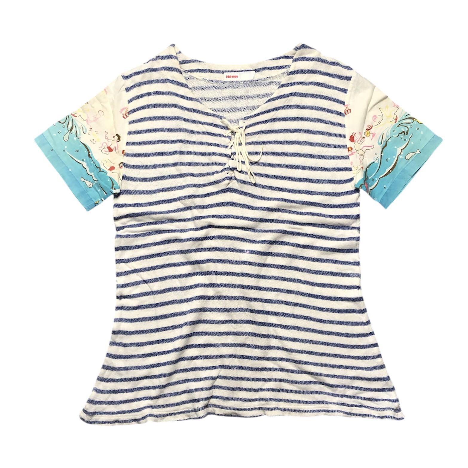 Ne-net Issey Miyake Striped blue And White Cotton Top Size M