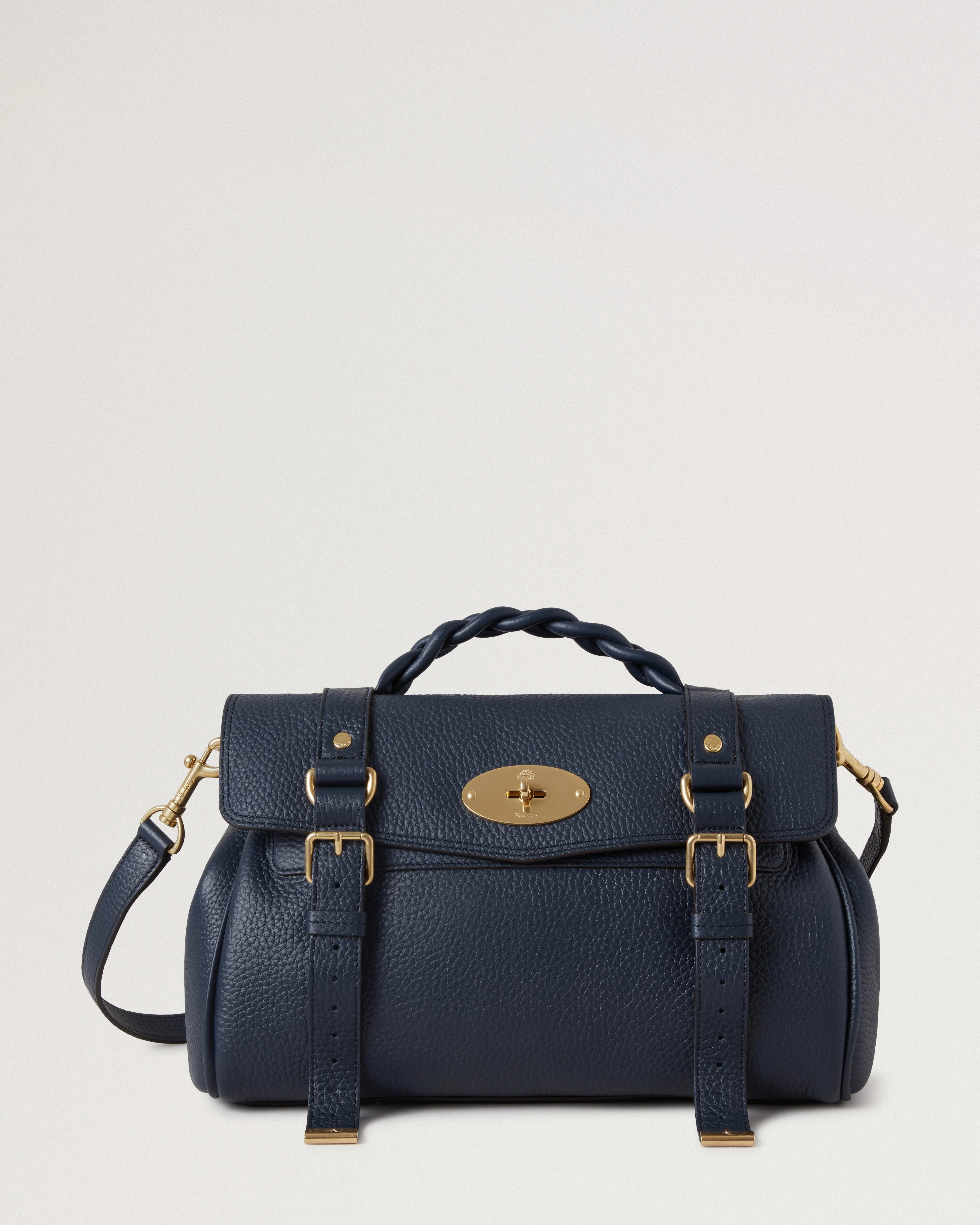 The Alexa effortlessly combines elements from two iconic Mulberry styles: the Bayswater bag and the Elkington briefcase. The result is an understatedly cool satchel complete with the signature Mulberry Postman’s Lock and belt buckle and strap hardware. Carry by the plaited leather top handle or wear with the adjustable cross body strap. Details A cult bag that epitomises laidback luxury. - Brass hardware finish - Postman’s Lock closure - Handcrafted braided top handle - Adjustable leather shoulder strap for crossbody wear - One main compartment - Internal slip pocket Height 9" Width 13" Depth 6¾" Handle Drop 2" Shoulder Strap 38¼-44½" Weight ½kg, approximately Material Heavy Grain A soft heavy bovine leather with a beautiful soft and supple hand feel. The surface will gradually become even softer with use adding to the beauty of the leather. This product's code is HH6746-736U888