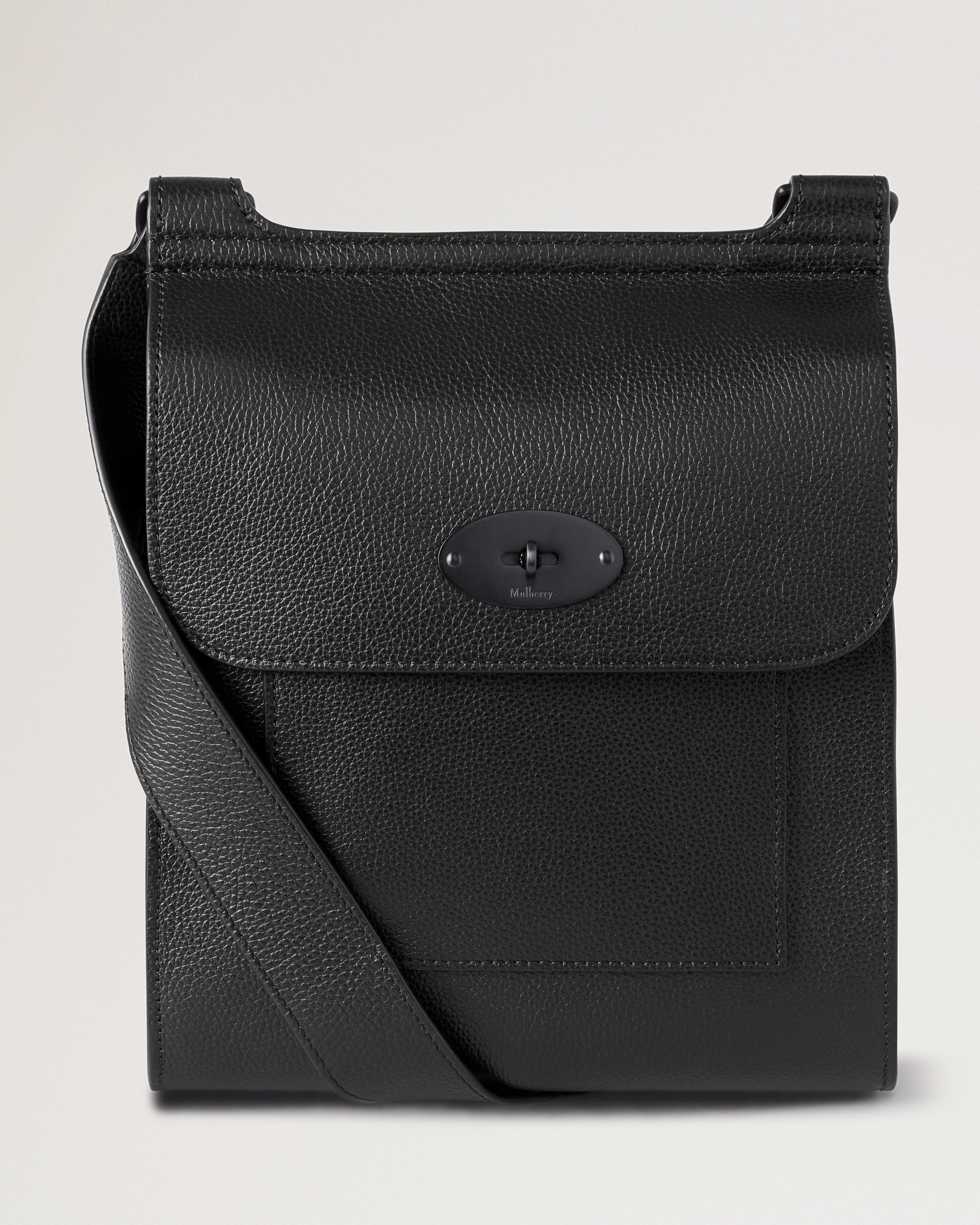 The Antony is a classic Mulberry satchel designed in functional shape and unisex style. Thoughtfully equipped, it features an adjustable strap that can be worn across the body or over the shoulder. Instantly recognisable, it is designed with the iconic Postman’s Lock detail. Details A classic satchel designed in functional shape and unisex style. - Postman's Lock closure - Black hardware finish - One main compartment - Internal foil embossed Mulberry signature - Adjustable leather shoulder strap - One external slip pocket - Suede and Herringbone lining Height 9¼" Width 8¾" Depth 2¾" Shoulder Strap 26¾" Weight ¼kg, approximately Material Small Classic Grain A soft cow leather with a small printed grain effect. The leather is lightly finished to protect the grain surface. This product's code is HH9364-205A310