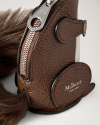 Inspired by London's Hyde Park, this Squirrel case keyring celebrates the whimsical British weather with a stroll through the park. Features a clip and split ring attachments, an internal compartment with zip, ideal for coins or tech, and a Mulberry Tree medallion. Details A squirrel-shaped case keyring. - Clip and split ring attachments - One main compartment with zip closure - Foil embossed Mulberry signature - Silver hardware finish - Shearling tail detailing - Nappa and PU lining Height 5" Height (incl. tail) 10¾" Width 2¼" Depth 2½" Material Mixed Leathers & Shearling A bovine leather keyring with metal attachments and shearling tail. This product's code is RK5981-000Z501
