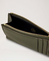 A stylish and practical Zipped Long Card Holder. Details A sleek and contemporary card holder. - Foil embossed Mulberry signature - Internal foil embossed Mulberry Tree - One gusseted zipped compartment - Four credit card slip pockets - External rear slip pocket - Soft Gold hardware finish - Moire and PU lining Width 5" Height 2¾" Depth ½" Material Small Classic Grain A soft cow leather with a small printed grain effect. The leather is lightly finished to protect the grain surface. This product's code is RL7975-205Q749