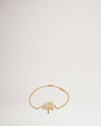 Introducing our newest jewellery collection celebrating the iconic Mulberry tree. On this bracelet the tree sits on a delicate gold plated adjustable chain. The perfect gift for a Mulberry keepsake. Details A brass Mulberry tree bracelet, that is flexible enough to comfortably slip over your wrist. - Refined and timeless Tree bracelet - Gold brass finish with Swarovski strass - Three rings to adjust the size of the bracelet - Engraved Mulberry signature plaque - Made in Italy Length 8¼" Material Metal & Swarovski Crystal Produced in solid metal with Swarovski crystal detailing. This product's code is QB2266-000N637