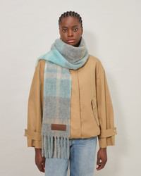 Oversized Check Textured Scarf Grey & Light Blue Wool Blend