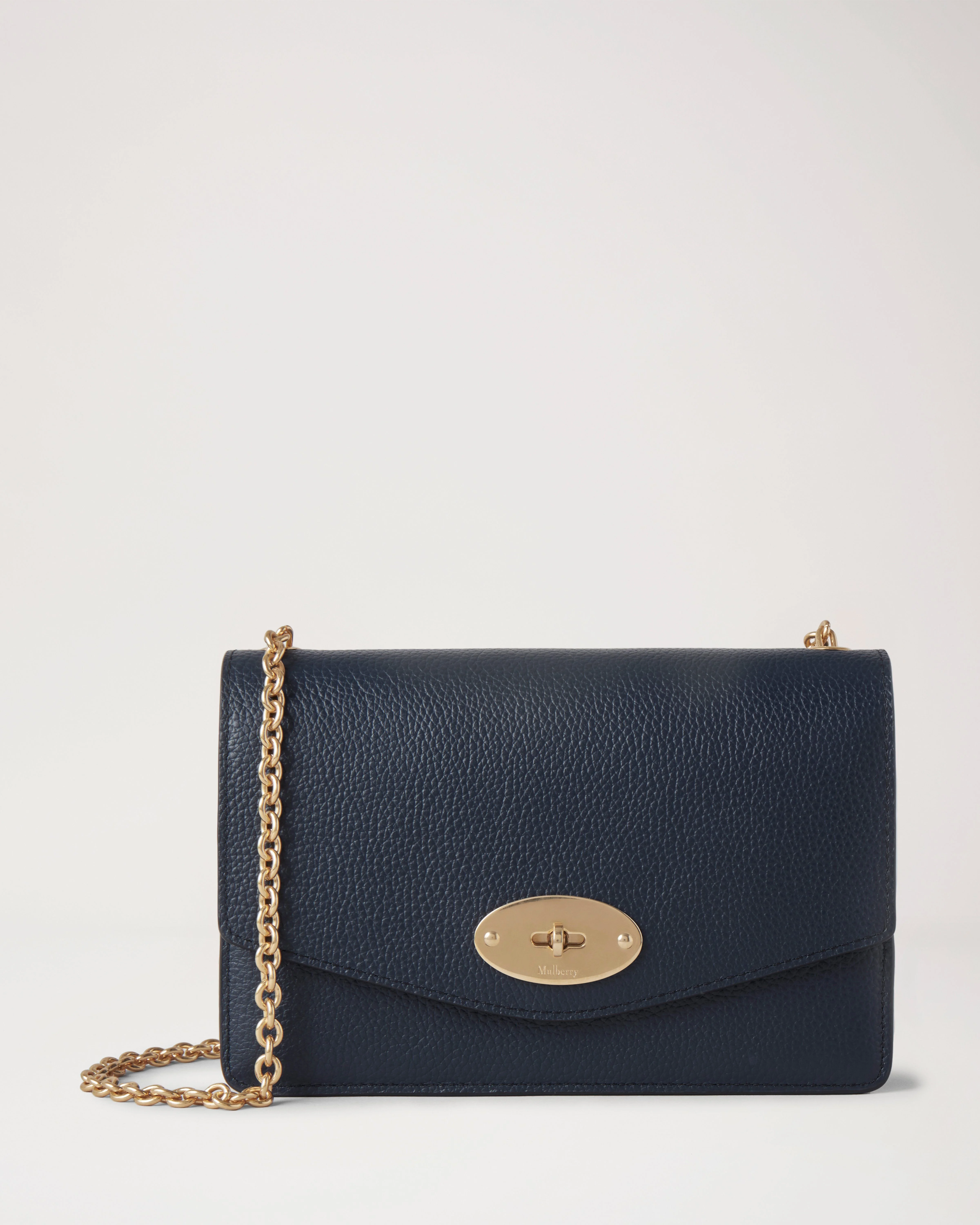 The Small Darley is a classic bag that celebrates our iconic Postman’s Lock. It’s perfect for carrying essentials or keeping valuables secure inside a large tote. Details The Small Darley can be worn across the body, over the shoulder, or carried as a clutch. - Detachable leather and chain strap - Postman's Lock closure - One main compartment - Eight credit card slip pockets - One internal zip compartment - Two internal slip pockets - One external zip pocket with gusset - Brass hardware finish - Nappa lining Height 5" Width 6¾" Depth 2¼" Shoulder strap Min 39¼" - Max 47¼" Material Small Classic Grain A soft and supple cow leather with a natural printed grain effect. This product's code is RL7791-205U888