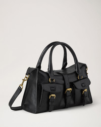 A small version of our Roxanne bag, itself a modern update on our 2004 style, the Small Roxanne takes all the Y2K attitude of the original and updates it, with brass buckling and streamlined details. Features two front pockets ideal for smaller items, as well as a detachable and adjustable strap for multiple ways of wearing. Details A Small version of our Y2K-inspired Roxanne style. - Brass hardware finish - Detachable and adjustable strap - Two top handles - Two external front pockets with magnetic closure - One internal slip pocket - Buckle detailing - Foil embossed Mulberry signature - Mulberry Heritage Check lining Height 5¼" - 6¾" Width 9½" - 11" Depth 2¼" - 4" Handle Drop 4¾" Strap Length 27¼" - 33" Strap Drop (from middle hole) 19¾" Weight ¼kg, approximately Material High Shine Leather A bovine leather with a natural grain and high shine finish. This product's code is HH9977-213A100