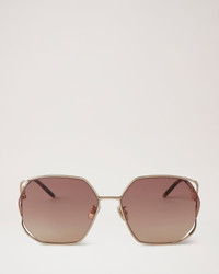 Go back to the seventies with our Willow Metal Sunglasses. Featuring Amberley Lock branding on the arms, these larger-than-life shades are perfect for festival season. UV400 lenses ensure full sun protection. Includes a Mulberry box, a case, and a sunglasses pouch that doubles as a cleaning cloth. Details A pair of large frame sunglasses. - Rider's Lock branding on arms with Mulberry engraving - Lightweight metal frame - Bio-nylon lenses - UV400 lenses - Lens Category: 2 - Gradient lenses - These sunglasses come with a case, a lens cloth or bag, and a branded cardboard box. Lens Height 2¼" Lens Width 2¾" Bridge ¾" Arm Length 5¼" Material Metal Durable metal frame with nylon bio-lenses. Bio-nylon lenses are biodegradable and use less energy than classic lenses. A material derived from the castor plant, and have metal detailing on the arm and front. This product's code is RS5471-000P694