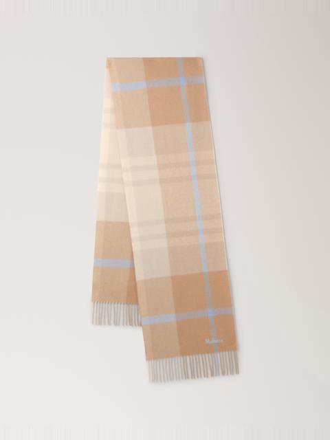 Small Check Merino Wool Scarf Camel & Poplin Blue Merino Wool