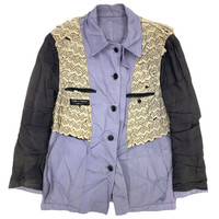 Multi-media research on influential designers. Find our website for more information. --- SS99 Reversible Lace Ruffled Lining Nylon Jacket COMME des GARÇONS HOMME PLUS Spring/Summer 1999 Size: M Surface: 100% nylon Lining: 100% cotton Made in Japan 🇯🇵 Shoulder width: 18.5" / 47 cm Chest width: 22" / 56 cm Sleeve length: 25.5" / 65 cm Body length: 31.5" / 80 cm --- Reversible lace ruffled lining nylon jacket from COMME des GARÇONS HOMME PLUS, Spring/Summer 1999. This eccentric piece is one of the most iconic creations of the label. This rather heavy summer jacket can be worn any way you like. It is in good condition with only a few light stains.