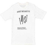 Multi-media research on influential designers. Find our website for more information. --- '92 'Twist' Exhibition Cotton T-Shirt Issey Miyake Size: M 100% cotton Shoulder width: 16.5" / 42 cm Chest width: 16.5" / 42 cm Sleeve length: 9" / 23 cm Body length: 29" / 74 cm --- Cotton T-shirt from the 'Issey Miyake Twist' exhibition held at the Benesse House as the opening exhibition of the Naoshima Contemporary Art Museum between July 11 and November 15, 1992. It consisted entirely of Pleats and Twist clothing, showing the original shape and production process. Issey Miyake, Spring/Summer 1992 was titled 'Twist'. The Benesse House was designed by Tadao Ando and one of his drawings of the building was printed on the front of the T-shirt. The T-shirt was notably worn by Issey Miyake and other staff members while preparing for the exhibition. It fits quite small, but it is meant to be this way. It is in good condition.