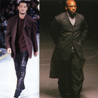 Multi-media research on influential designers. Find our website for more information. --- AW96 Metallic Knit Acrylic-Nylon Sweater ISSEY MIYAKE MEN Autumn/Winter 1996-1997 Size: M 65% acrylic, 35% nylon Made in Japan π―π΅ Shoulder width: 20.5" / 52 cm Chest width: 21" / 53 cm Sleeve length: 29.5" / 75 cm Body length: 25.5" / 65 cm --- Metallic knit acrylic-nylon sweater from ISSEY MIYAKE MEN, Autumn/Winter 1996-1997, by Naoki Takizawa. Although it is unclear from the pictures, this piece incorporates shiny silver nylon threads, which gives it a metallic texture and glam aspect. It is subtle, but produces an interesting effect. This is in line with the rest of the season, which revolved heavily around high-shine metallics. The top can stretch easily to any type of body; it is comfortable and easy to wear. It is in good condition.