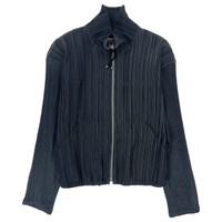 Multi-media research on influential designers. Find our website for more information. --- AW96 Short Pleated Full-Zip Jacket ISSEY MIYAKE MEN Autumn/Winter 1996-1997 Size: M 100% polyester Made in Japan π―π΅ Shoulder width: 21" / 53 cm Chest width: 24" / 61 cm Sleeve length: 22" / 56 cm Body length: 24" / 61 cm --- Short pleated full-zip jacket from ISSEY MIYAKE MEN, Autumn/Winter 1996-1997, by Naoki Takizawa. It is a rare and beautiful instance of the iconic pleats from the ISSEY MIYAKE brand. Although acting as Issey Miyake's right-hand man for many years and taking a primary role in the development of the pleating technique, Naoki Takizawa scarcely used the recognizable pleats in his menswear collections. The jacket is light, but keeps a good structure when worn. The pockets, zipper, and high collar set it apart from other pleated jackets from the brand. It is in great condition.