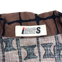 Multi-media research on influential designers. Find our website for more information. --- I.S. Spring/Summer 1987 Size: 9 100% cotton Made in Japan 🇯🇵 Shoulder width: 21.5" / 55 cm Chest width: 22.5" / 57 cm Sleeve length: 7.5" / 19 cm Body length: 29" / 74 cm --- Tribal cotton shirt from I.S., Spring/Summer 1987. Beautiful piece and print, which makes it perfect for summer. The cotton is a bit rough and definitely has an interesting texture. It is in great condition.