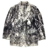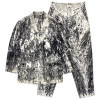 Multi-media research on influential designers. Find our website for more information. --- SS94 Suminagashi-Dyed Cotton Suit ISSEY MIYAKE MEN Spring/Summer 1994 Size: M 100% cotton Made in Japan π―π΅ Shoulder width: 20" / 51 cm Chest width: 24.5" / 62 cm Sleeve length: 25" / 64 cm Body length: 32.5" / 82 cm Waist: 15.5" / 39 cm Thigh: 14.5" / 37 cm Rise: 16.5" / 42 cm Inseam: 33" / 84 cm Length: 45.5" / 116 cm Leg opening: 8" / 20 cm --- Suminagashi-dyed cotton suit from ISSEY MIYAKE MEN, Spring/Summer 1994. This eccentric set is perfect for all seasons. The dying technique shares similarities with the suminagashi dying technique, meaning 'floating ink', a Japanese paper marbling technique using water and ink. It is slightly oversized and quite comfortable. It is in good condition; it has a few small stains, but you cannot easily notice them due to the disordered motif.